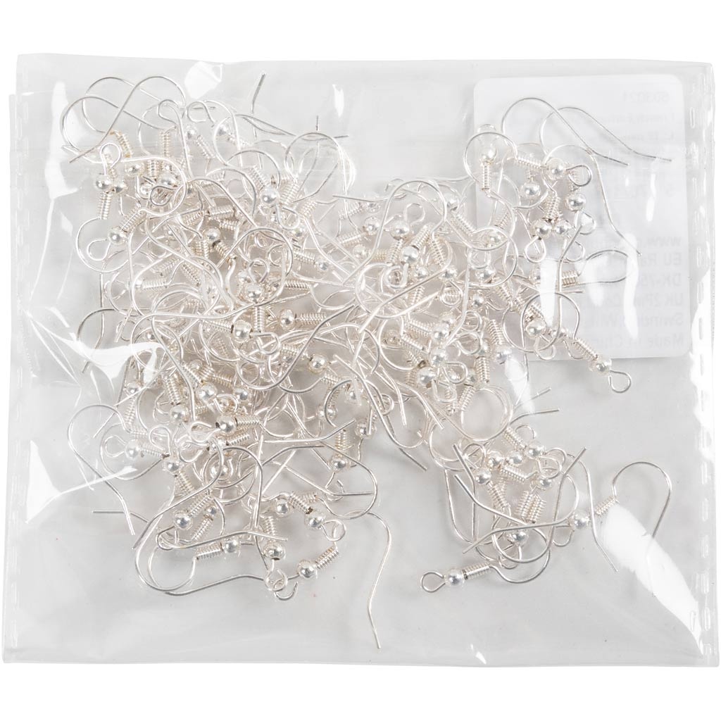Creativ Company Oorbelhaaken, L: 18 mm, verzilverd, 100 stuk/ 1 doos