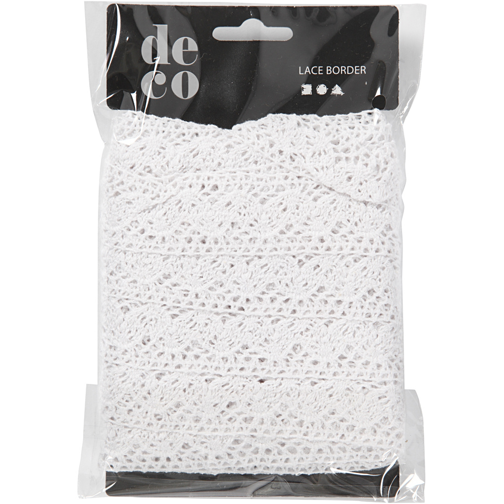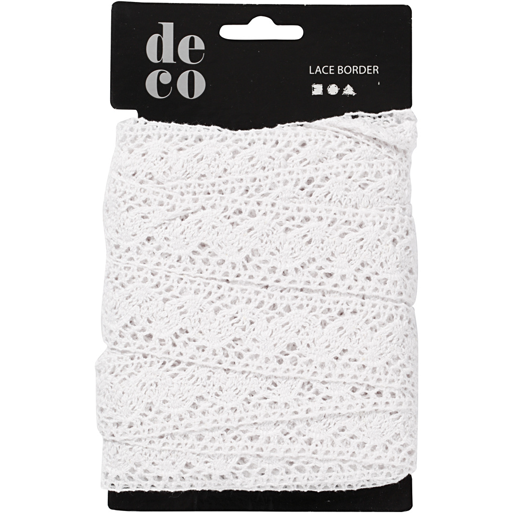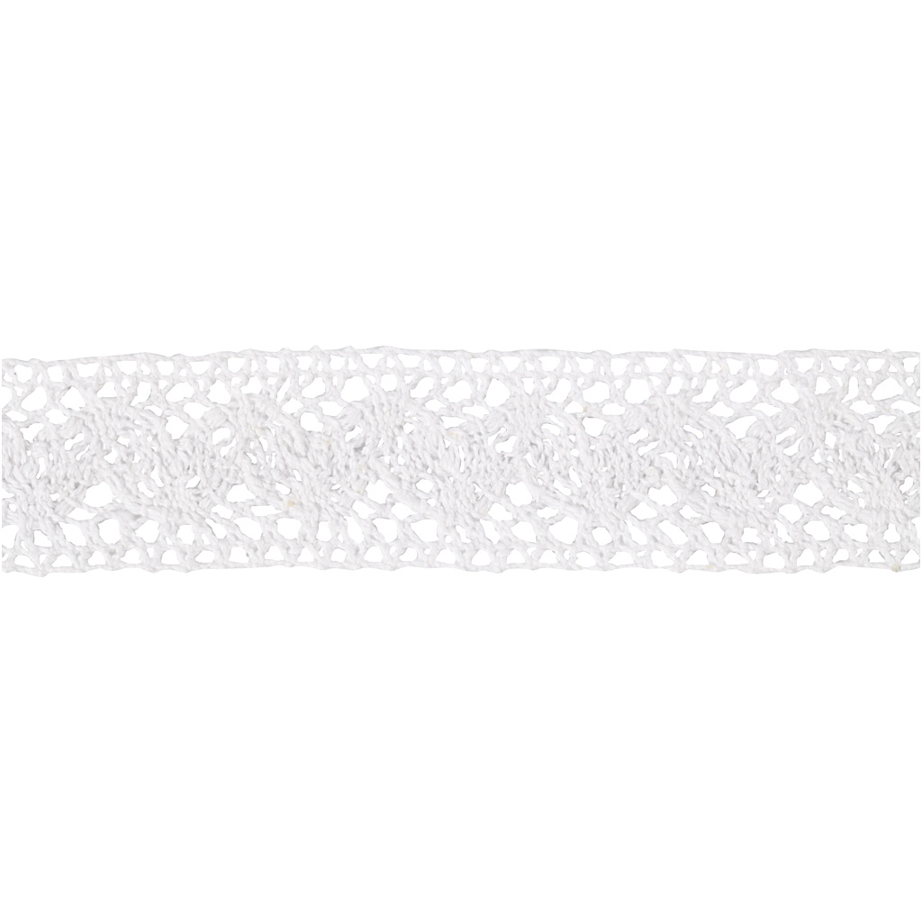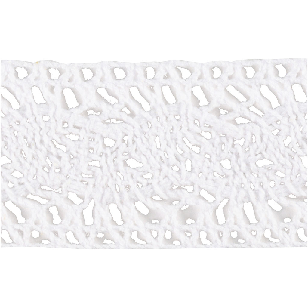 Creativ Company Gehaakt Kanten lint, B: 30 mm, wit, 10 m/ 1 rol