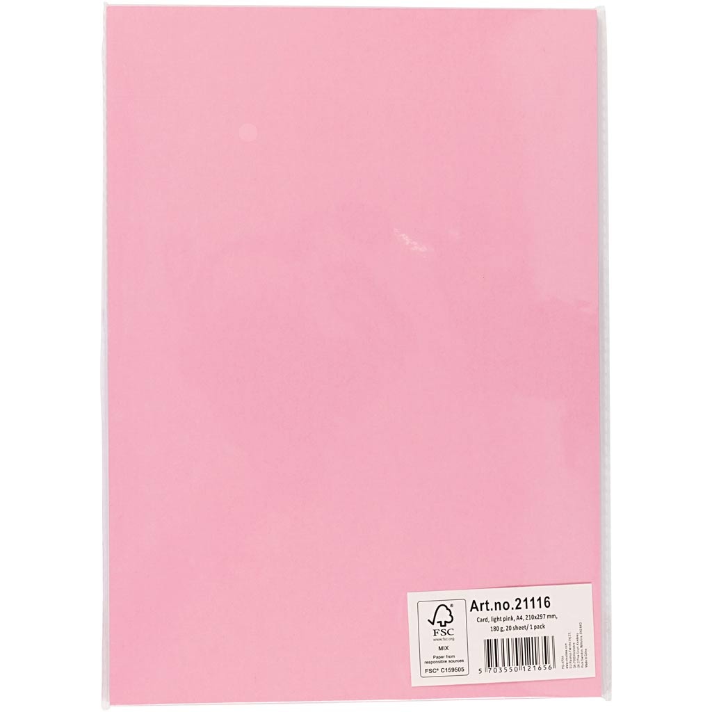 Creativ Company Gekleurd Karton, A4, vel 210x297 mm, 180 gr, lichtroze, 20 vel/ 1 doos