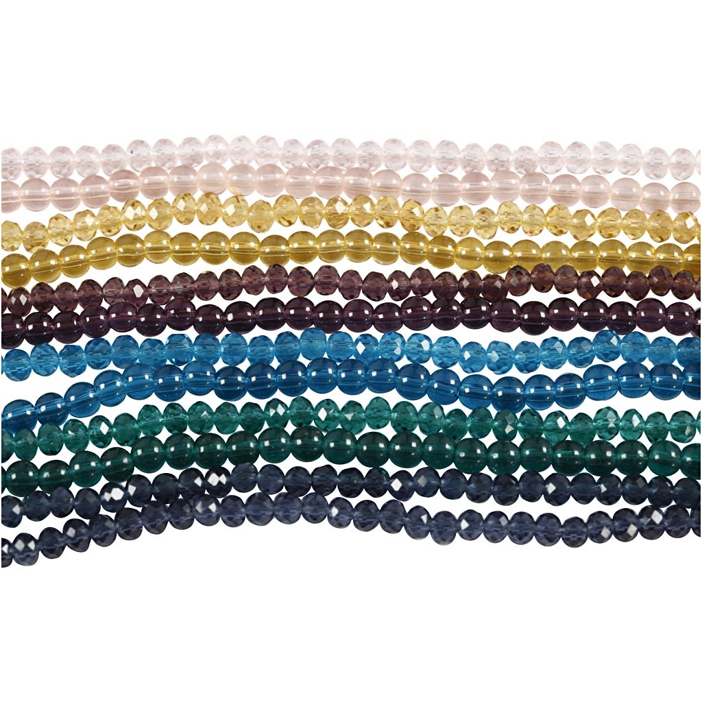 Creativ Company Glas en Facet kralen, d 4 mm, gatgrootte 1 mm, 12x45 stuk/ 1 doos