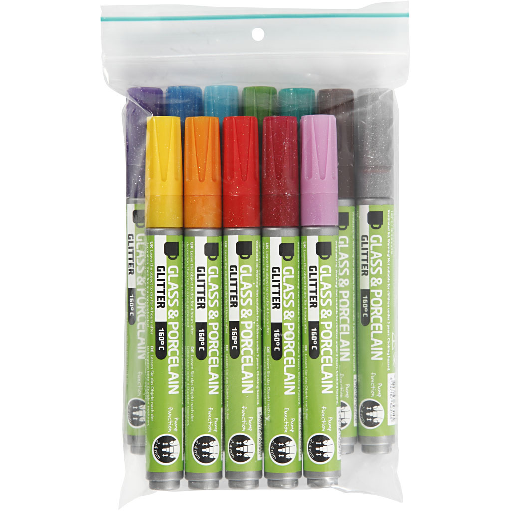 De Kreul Glas- & Porseleinstiften zijn een veelzijdige keuze voor het personaliseren van glaswerk en porselein. Deze set bestaat uit 12 stiften in verschillende kleuren, geschikt voor creatieve projecten en het decoreren van servies, glazen potten of vazen. De stiften hebben een lijndikte van 2-4 mm en zijn semi-dekkend, waarmee zowel fijne lijnen als bredere accenten mogelijk zijn.