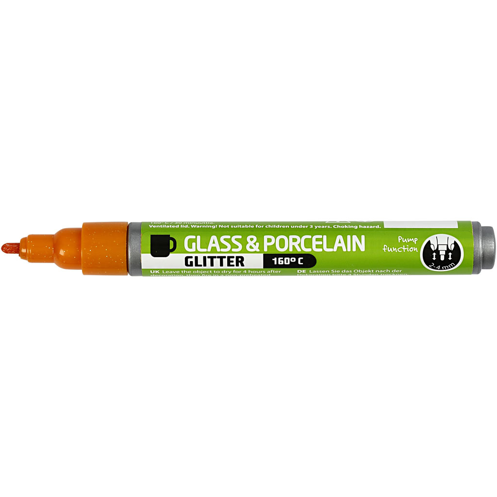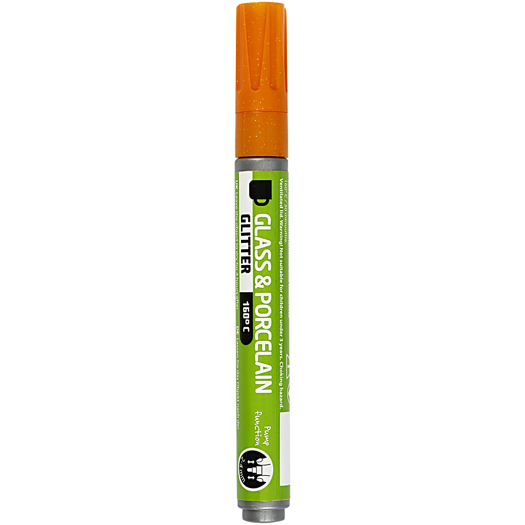 Kreul Glas- & Porseleinstiften, glitter, lijndikte 2-4 mm, semi-dekkend, oranje, 1 stuk