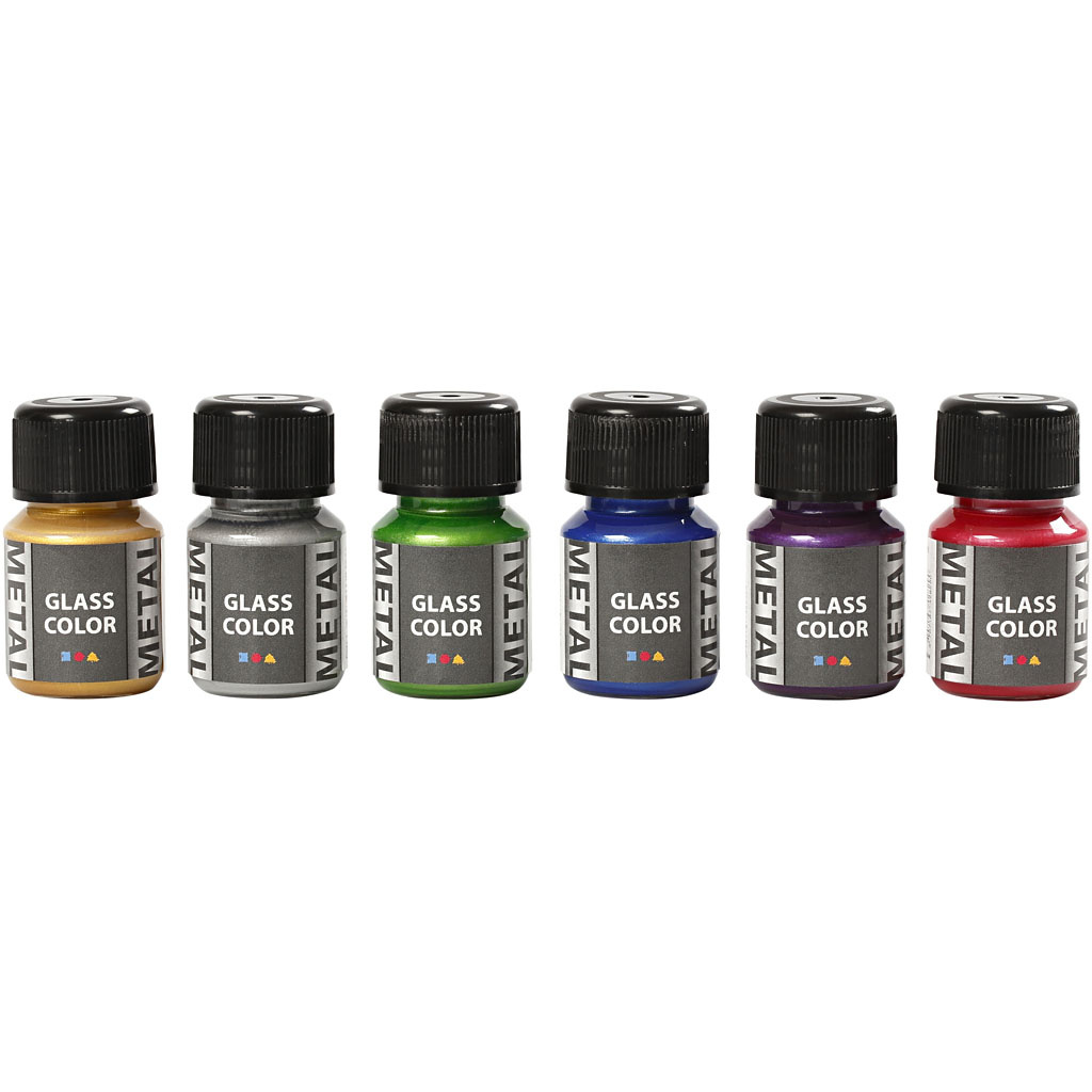 Creativ Company Glass Color Metal, diverse kleuren, 6x30 ml/ 1 doos