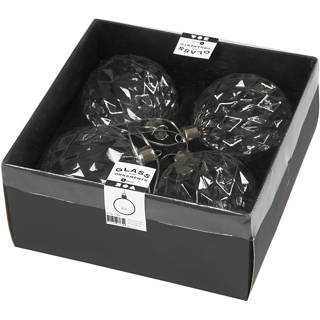 Creativ Company Glazen facet bal, d 7,8 cm, transparant, 4 stuk/ 1 doos