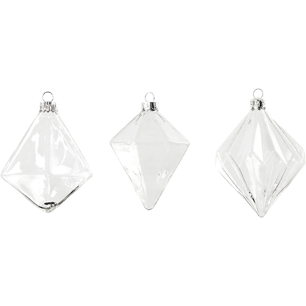 Creativ Company Glazen Ornamenten, H: 9,6+9,8+10,5 cm, d 7+7,9+8 cm, transparant, 3 stuk/ 1 doos