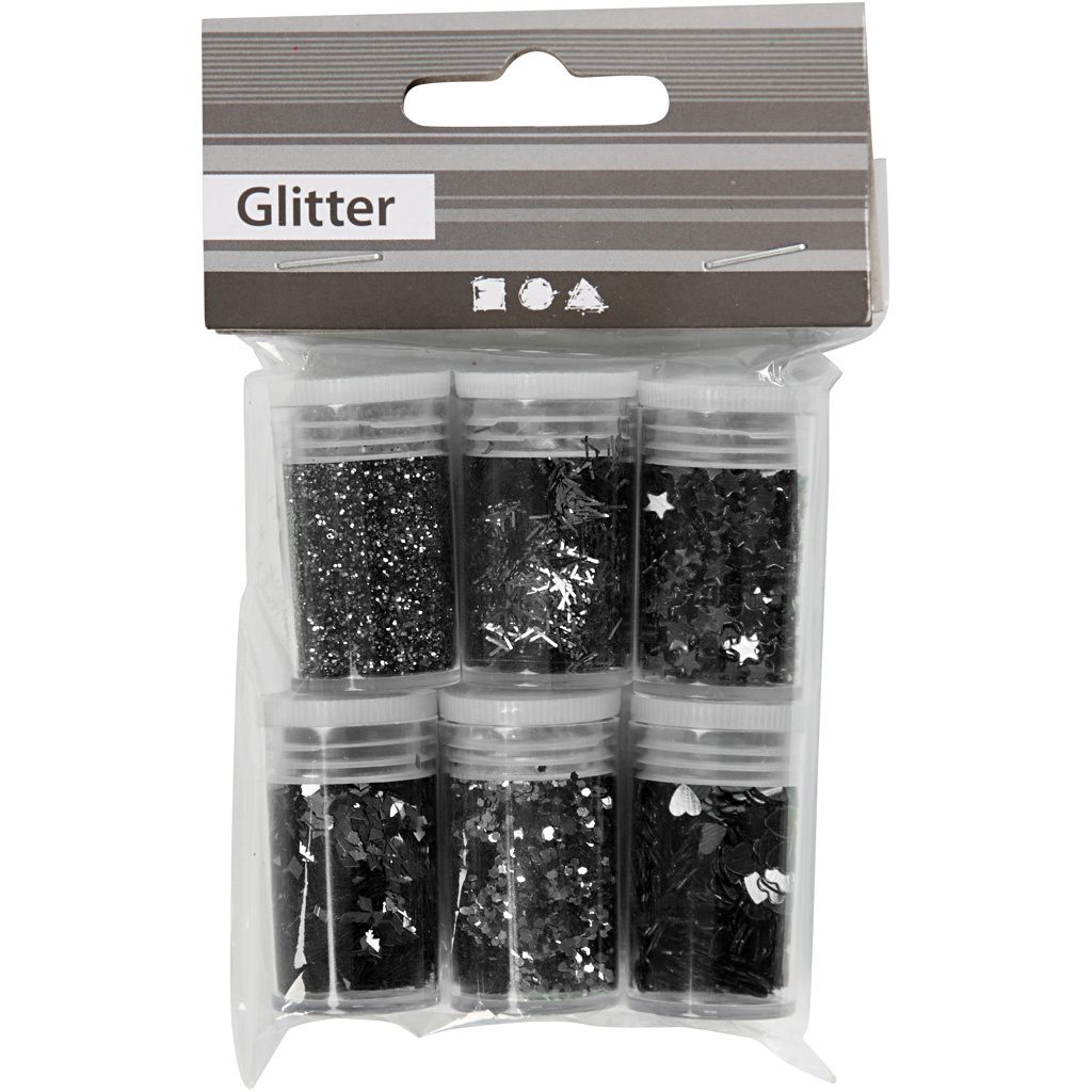 Creativ Company Glitter en Pailletten, zwart, 6x5 gr/ 1 doos