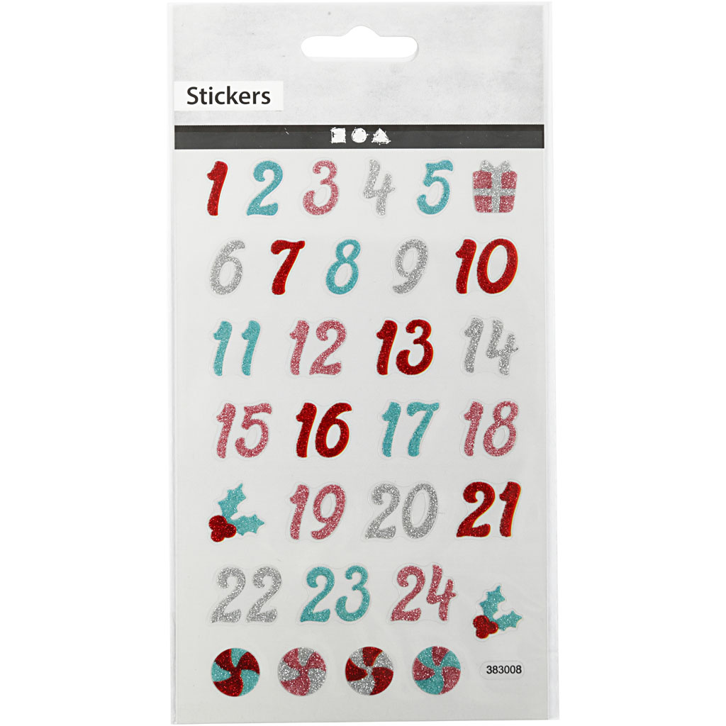Creativ Company Glitter stickers, advent cijfers, vel 10x16 cm, 1 vel