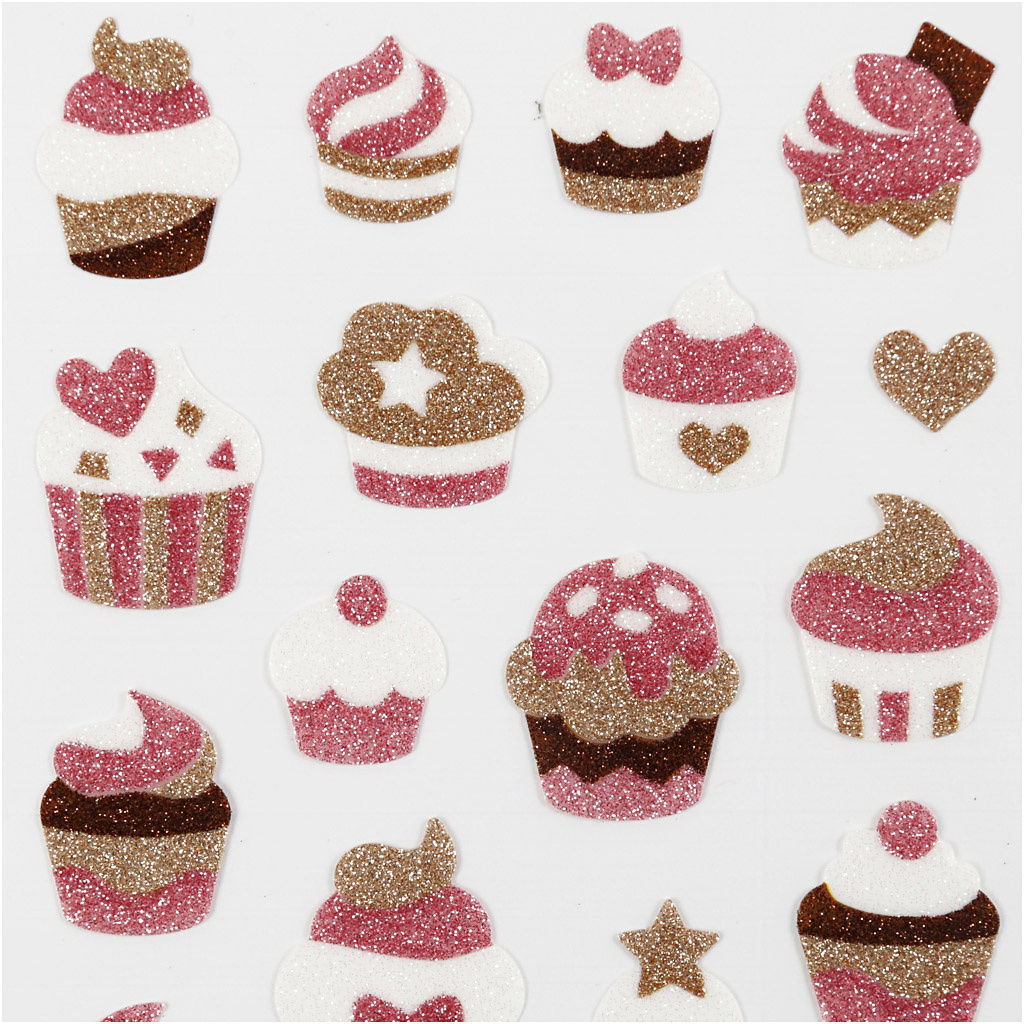 Creativ Company Glitter stickers, cupcakes, vel 10x16 cm, 1 vel