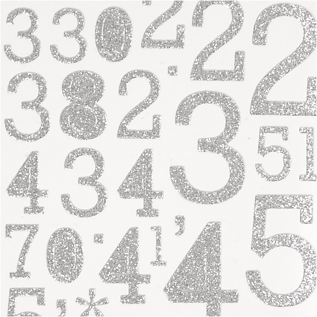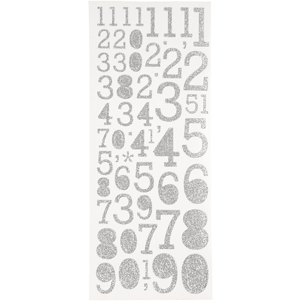 Creativ Company Glitterstickers, cijfers, vel 10x24 cm, zilver, 2 vel/ 1 doos