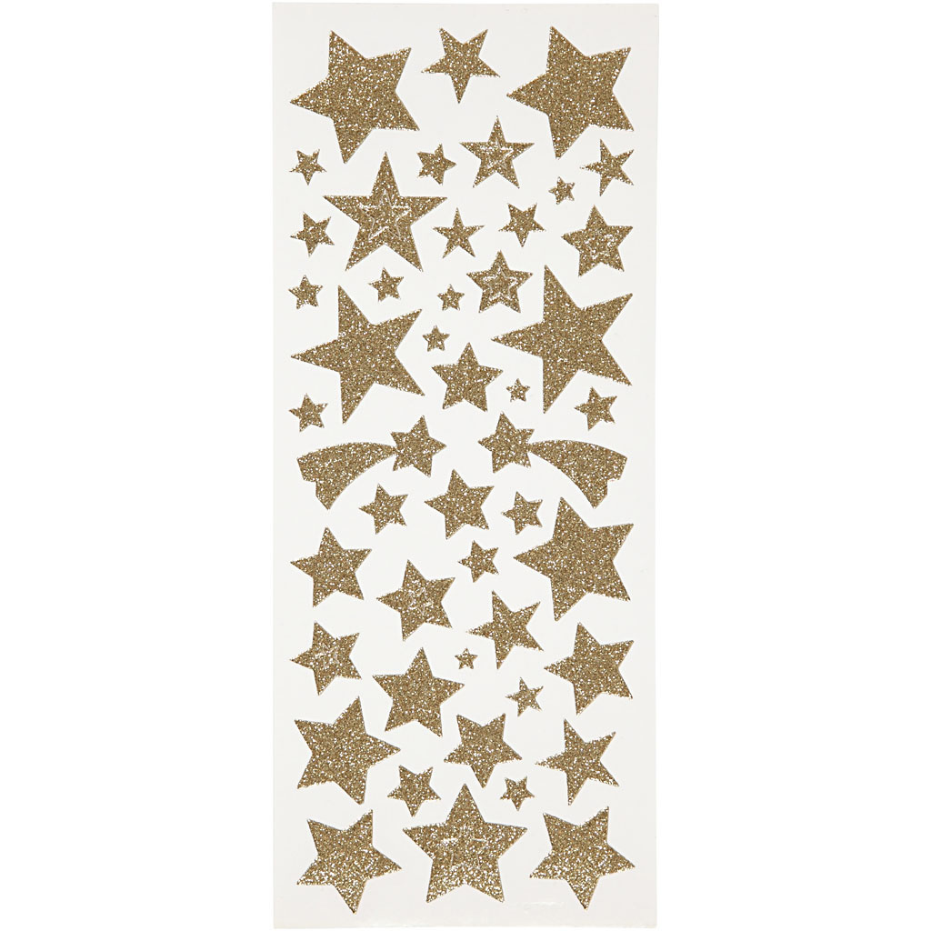 Creativ Company Glitterstickers, sterren, vel 10x24 cm, ca. 110 stuk, goud, 2 vel/ 1 doos