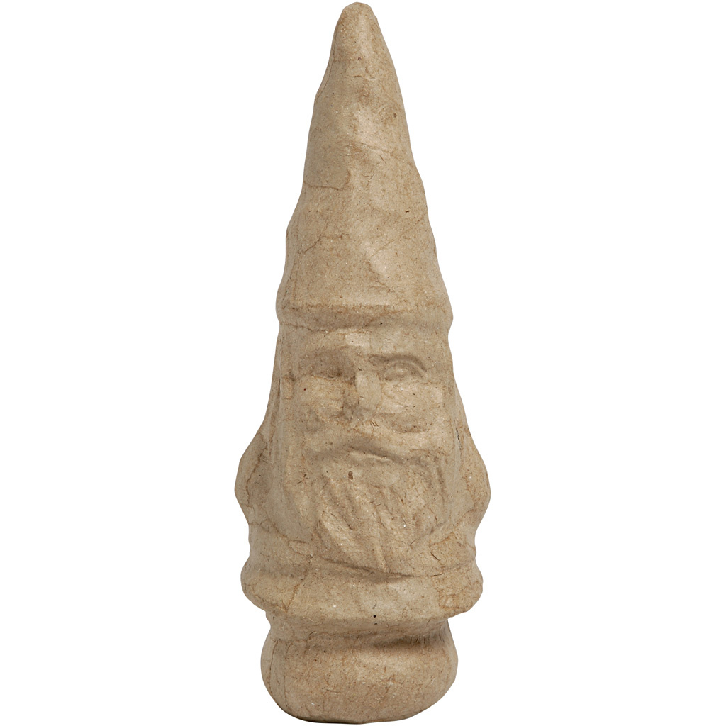 Handgemaakte kabouter van papier-maché met een groot hoofd en een klein lijf Lees meer