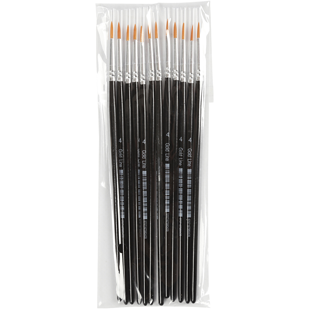 Creativ Company Gold Line penselen, afm 4, L: 17 cm, B: 2,5 mm, rond, 12 stuk/ 1 doos