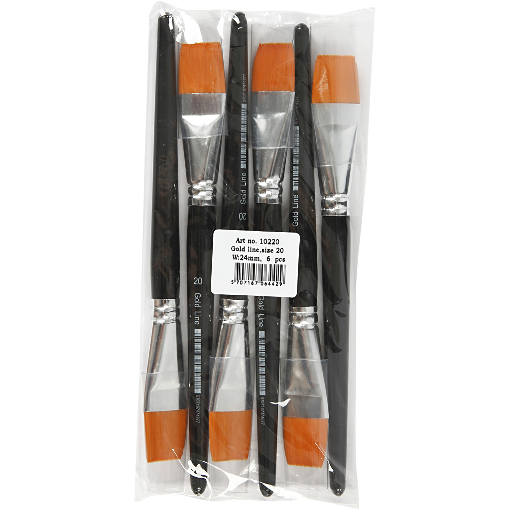 Creativ Company Gold Line penselen, afm 20, L: 21 cm, B: 24 mm, plat, 6 stuk/ 1 doos