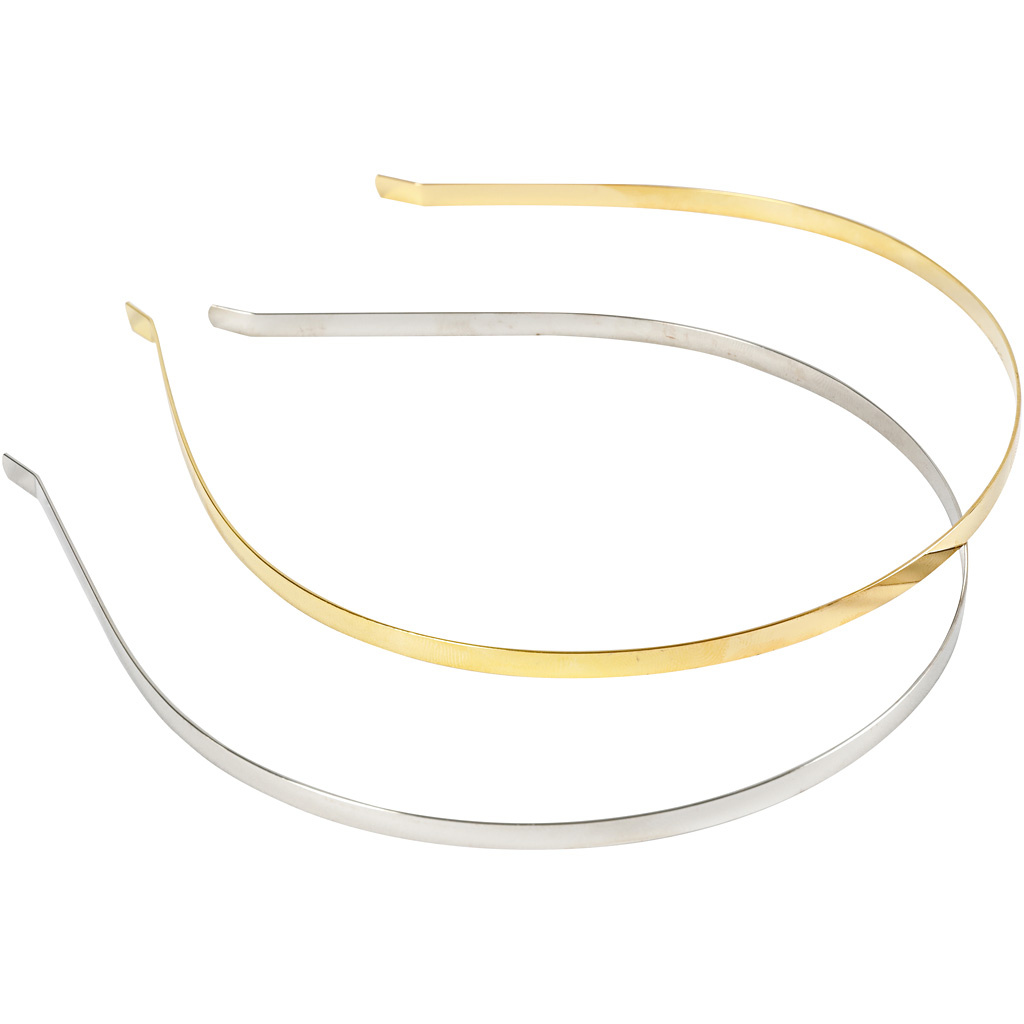 Creativ Company Haarband, L: 14 cm, B: 5 mm, verguld, verzilverd, 2 stuk/ 1 doos