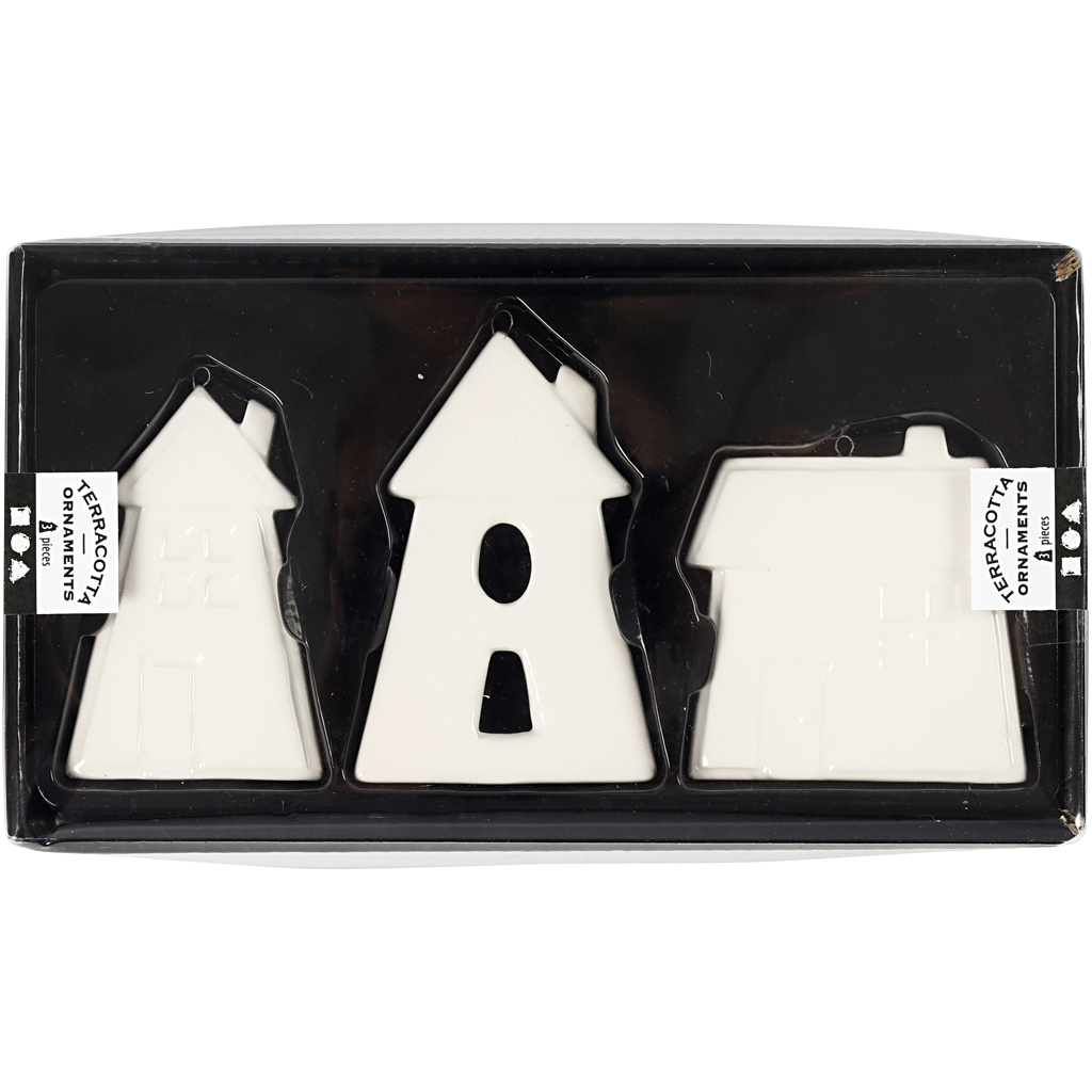 Creativ Company Hangende ornamenten, huizen, H: 7,6-9,7 cm, wit, 3 stuk/ 1 doos