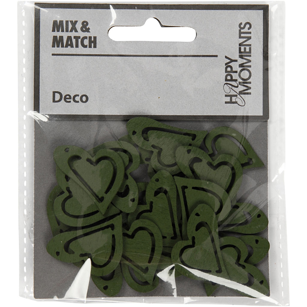 Creativ Company Hart, afm 25x22 mm, dikte 1,7 mm, donkergroen, 20 stuk/ 1 doos