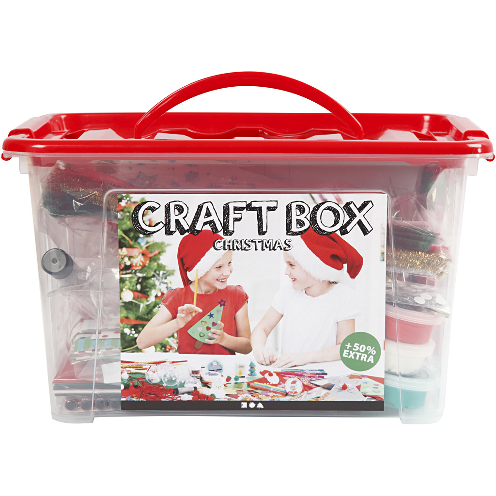 Een hoeveelheid verschillende creatieve materialen voor hobbyprojecten, geleverd in een plastic box met praktisch handvat aan het deksel Lees meer