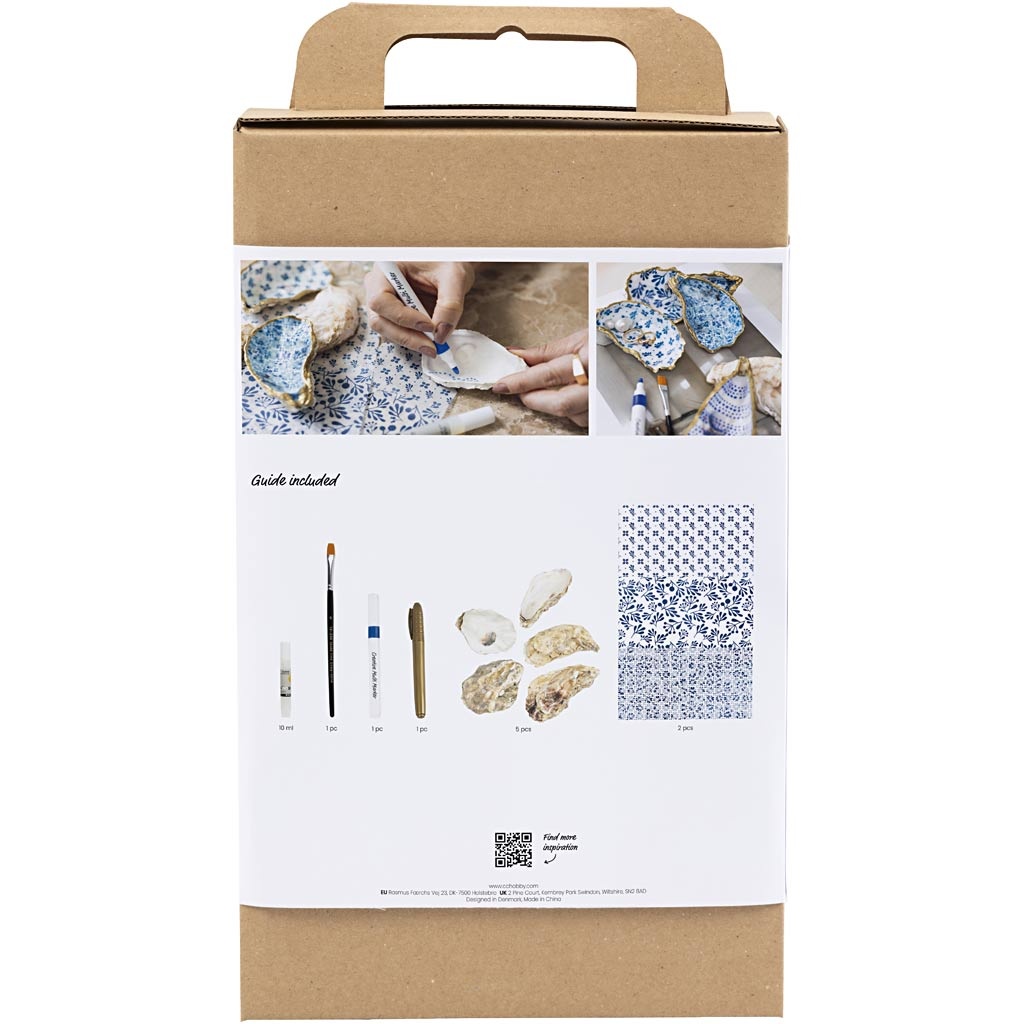 Met Creativity in a Box kunt u de schatten van de zee omtoveren in mooie en unieke decoupageschalen – ideaal om sieraden en andere kleine spulletjes in op te bergen. De set bevat materialen voor vijf gedecoreerde oesters en alle instructies die u nodig hebt