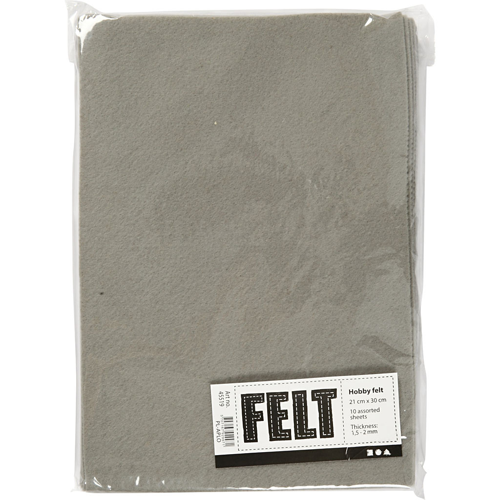 Hobbyvilt, A4, vel 210x297 mm, dikte 1,5-2 mm, grijs, 10 vel/ 1 doos