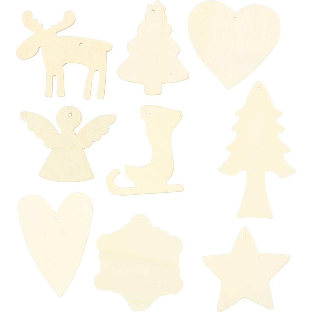 Creativ Company Houten decoraties, Kerst, afm 7-8 cm, 72 stuk/ 1 doos