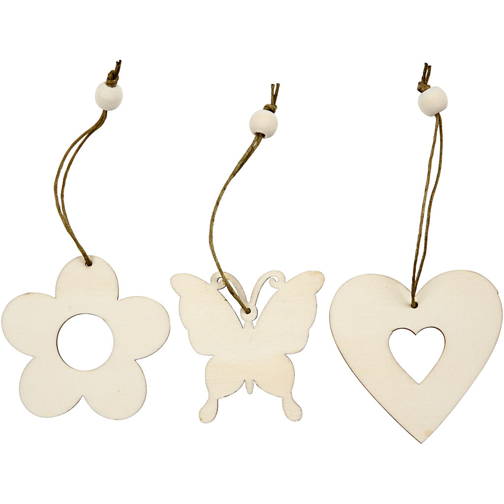 Creativ Company Houten decoraties, bloem, vlinder, hart, afm 6 cm, dikte 3 mm, 200 stuk/ 1 doos
