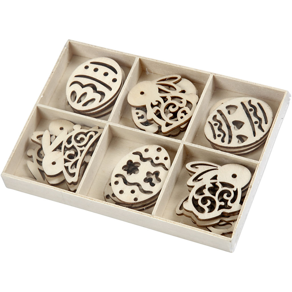 Creativ Company Houten figuren, Pasen, H: 40 mm, dikte 3 mm, 24 stuk/ 1 doos