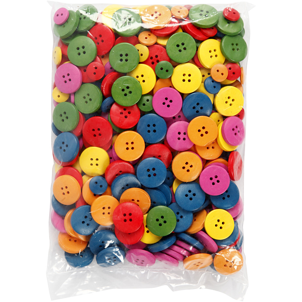 Creativ Company Houten knopen, d 12-20 mm, 2-4 gaten, diverse kleuren, 360 stuk/ 1 doos