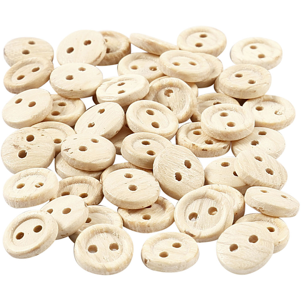 Creativ Company Houten knopen, d 8 mm, 2 gaten, 50 stuk/ 1 doos