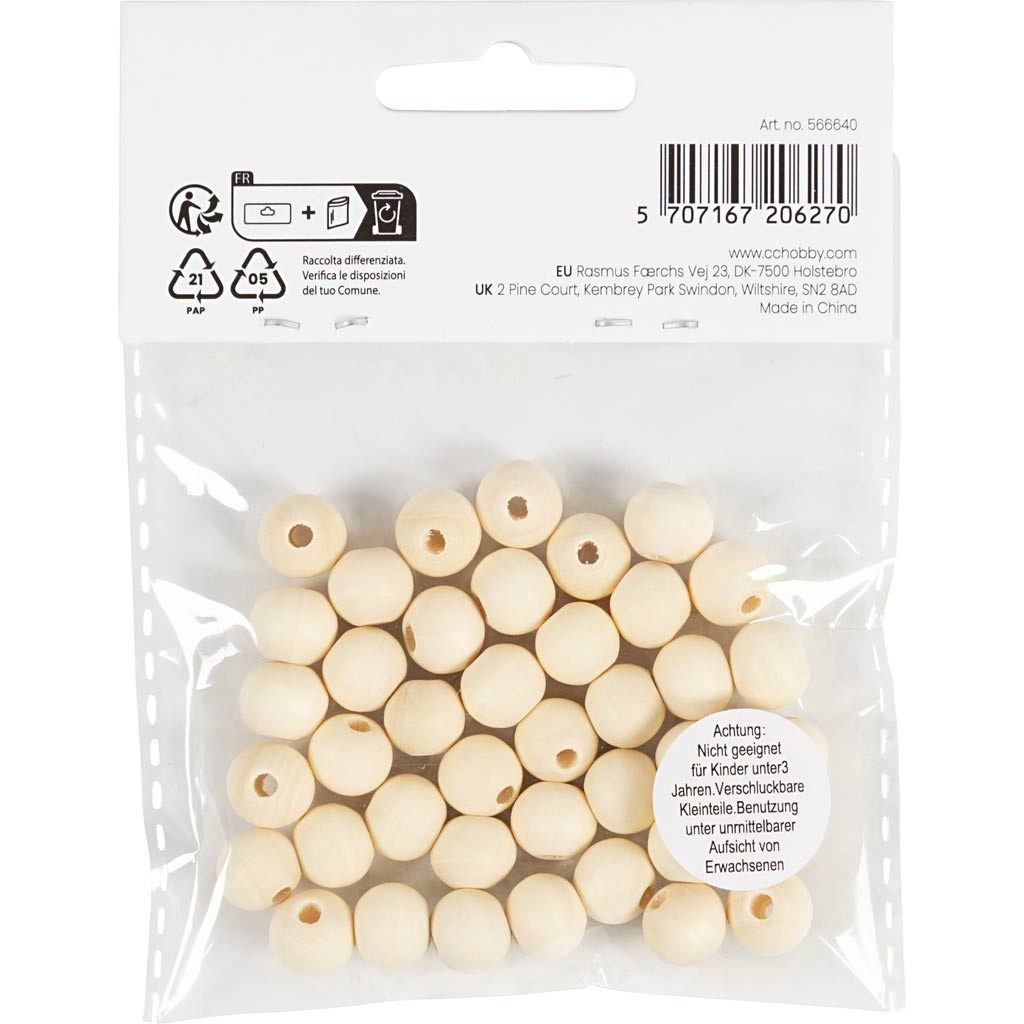 Creativ Company Houten kraal, d 10 mm, gatgrootte 2,5 mm, 40 stuk/ 1 doos