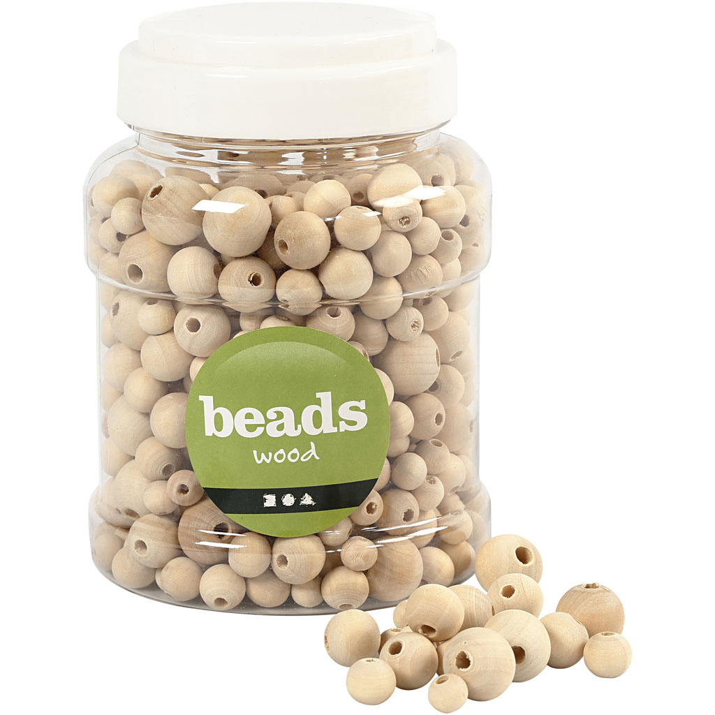 Creativ Company Houten kralen, d 8+10+12+15 mm, gatgrootte 2-3 mm, 175 gr, 400 ml/ 1 emmer