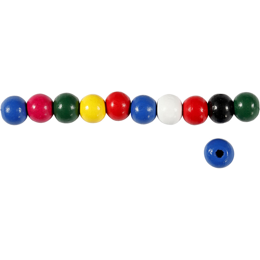 Creativ Company Houten kralen, d 8 mm, gatgrootte 2 mm, diverse kleuren, 15 gr/ 1 doos