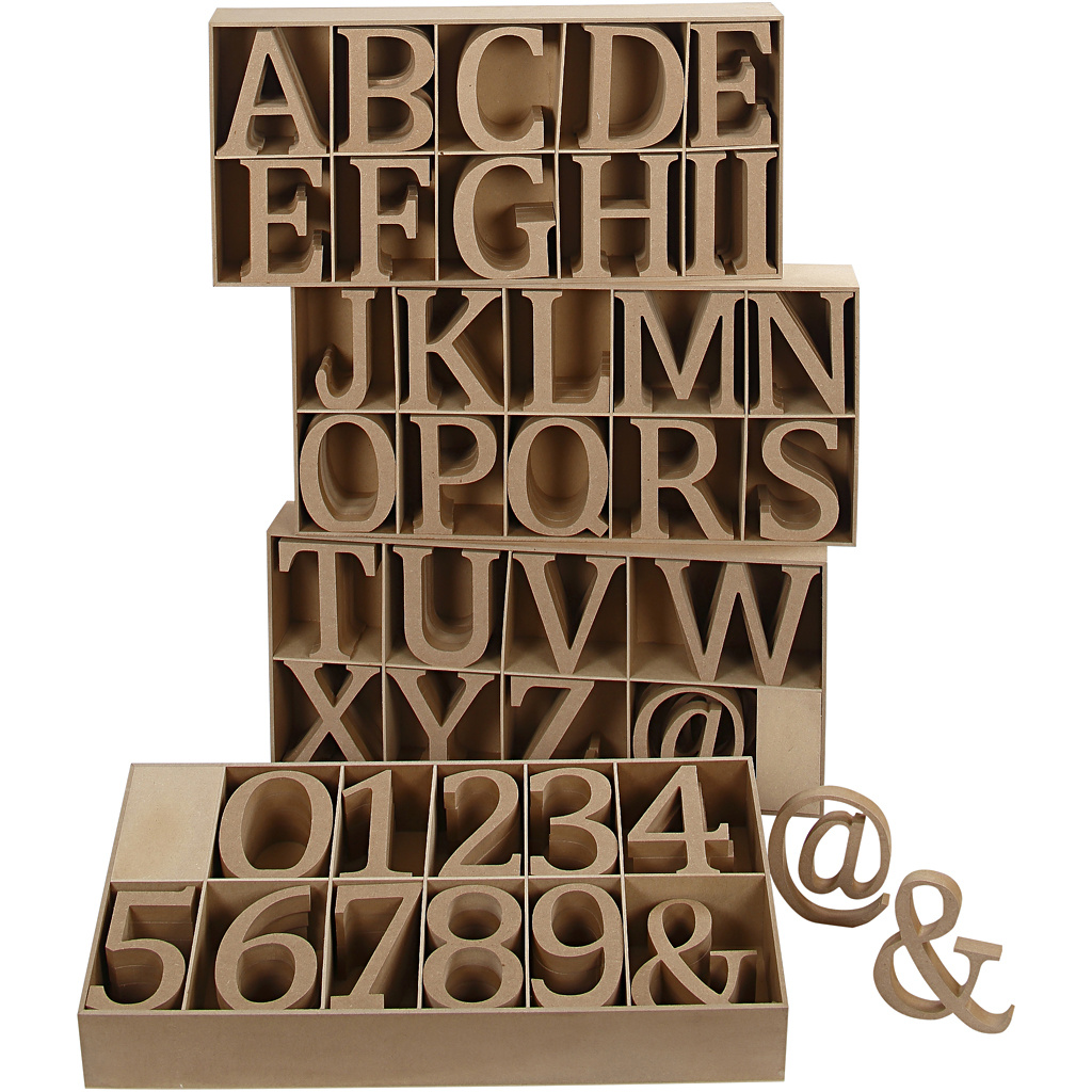 Creativ Company Houten letters, cijfers en tekens, H: 13 cm, dikte 2 cm, 160 stuk/ 1 doos