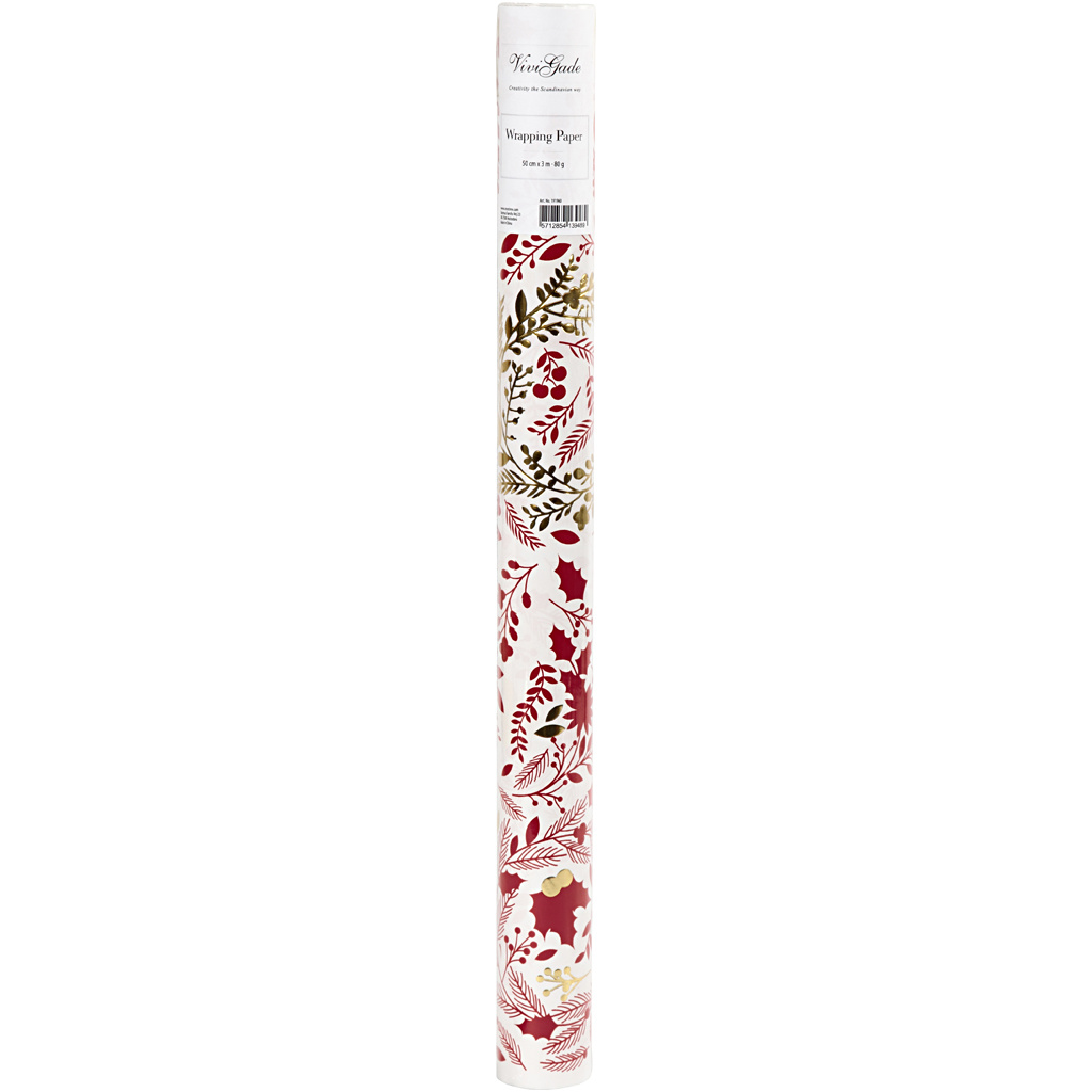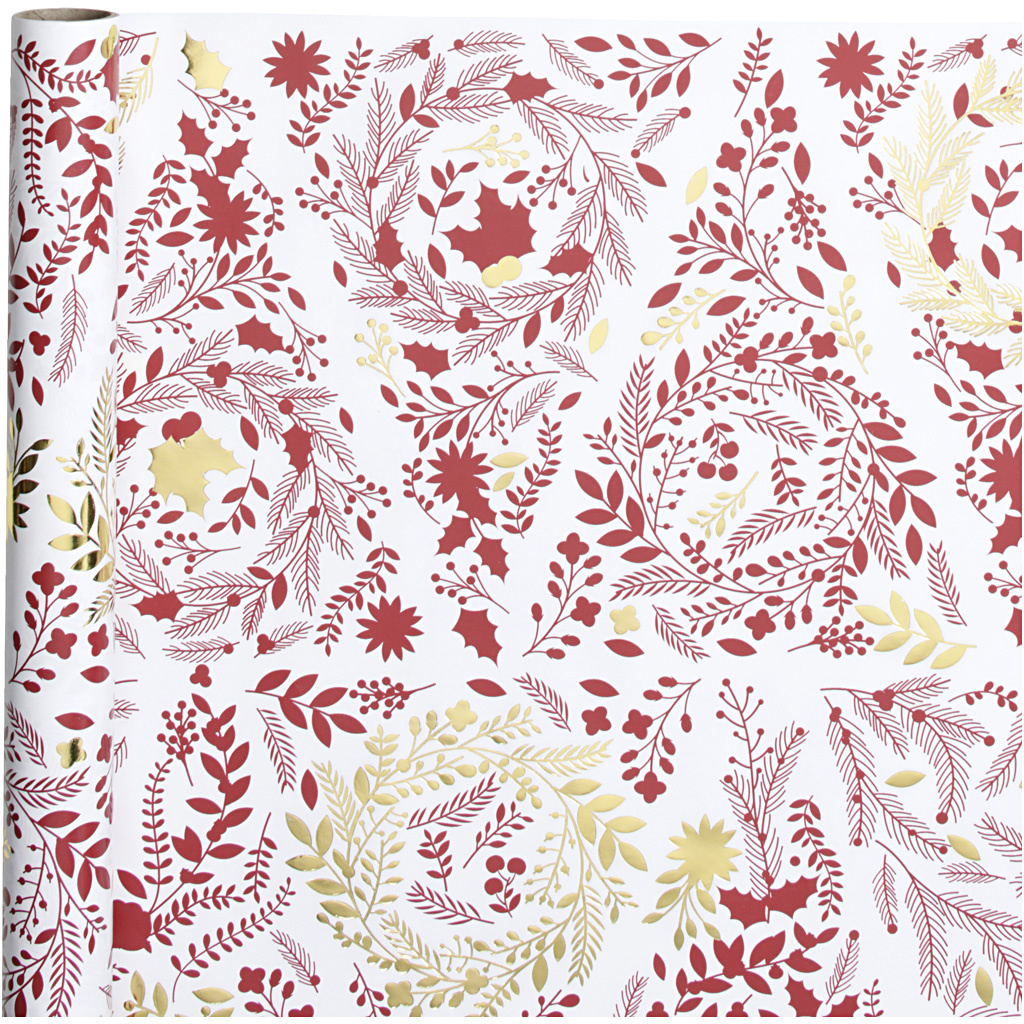 Creativ Company Inpakpapier, kerstbomen, B: 50 cm, 80 gr, goud, rood, wit, 3 m/ 1 rol