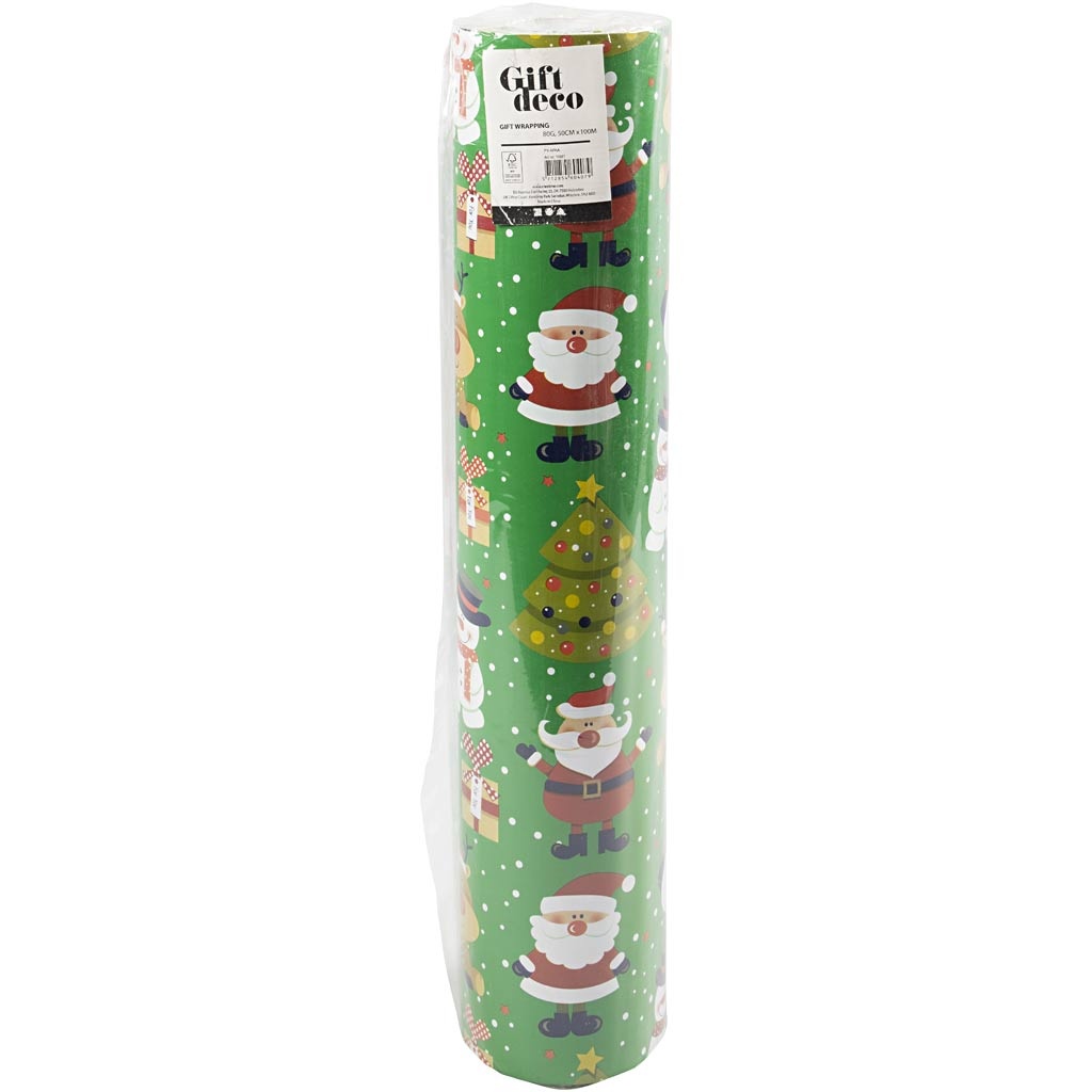 Creativ Company Inpakpapier, Kerstman, kerstboom, kerstcadeau, rendier, sneeuwpop en pinguïn, B: 50 cm, 80 gr, groen, 100 m/ 1 rol