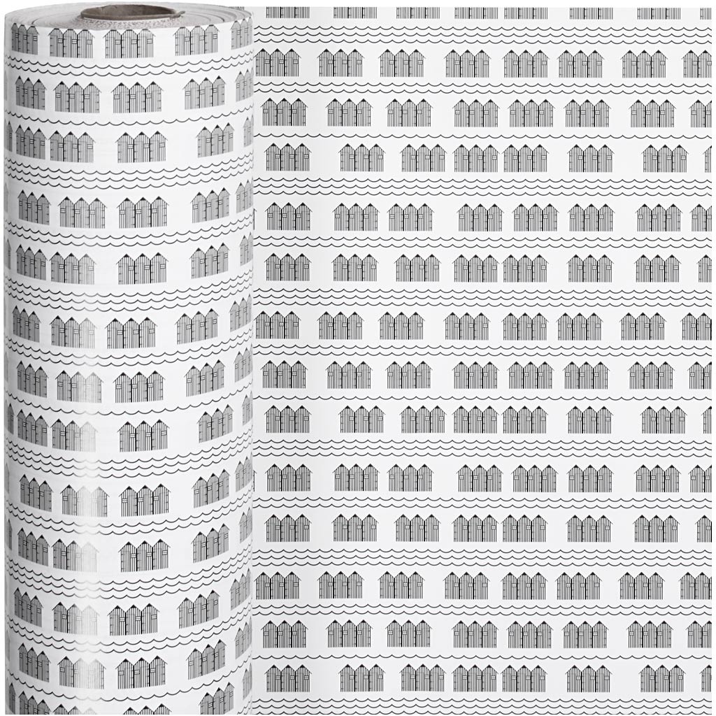 Inpakpapier, badhuis, B: 57 cm, 80 gr, zwart, wit, 150 m/ 1 rol