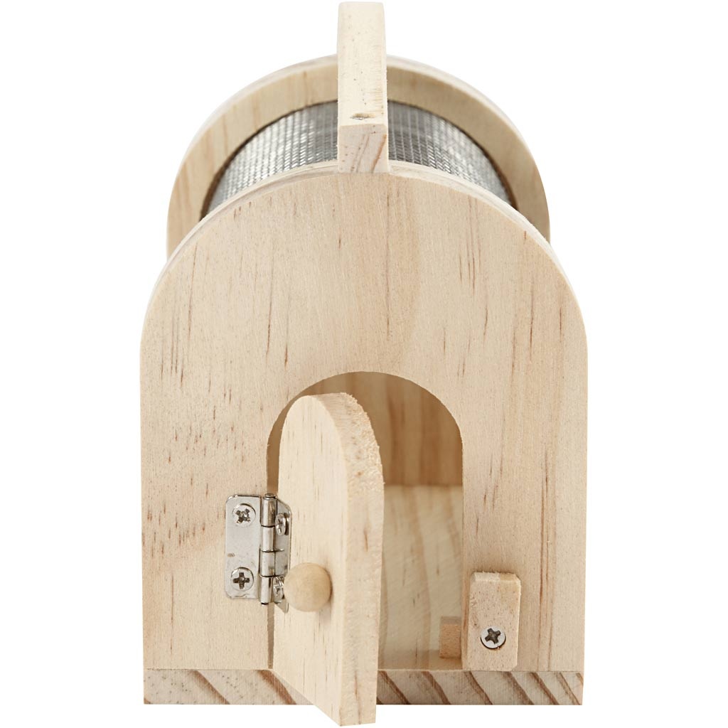 Insectenkooi in licht hout met gaas, deur aan één uiteinde en stevige handgreep aan de bovenkant, zodat de kooi gemakkelijk vervoerd kan worden Lees meer