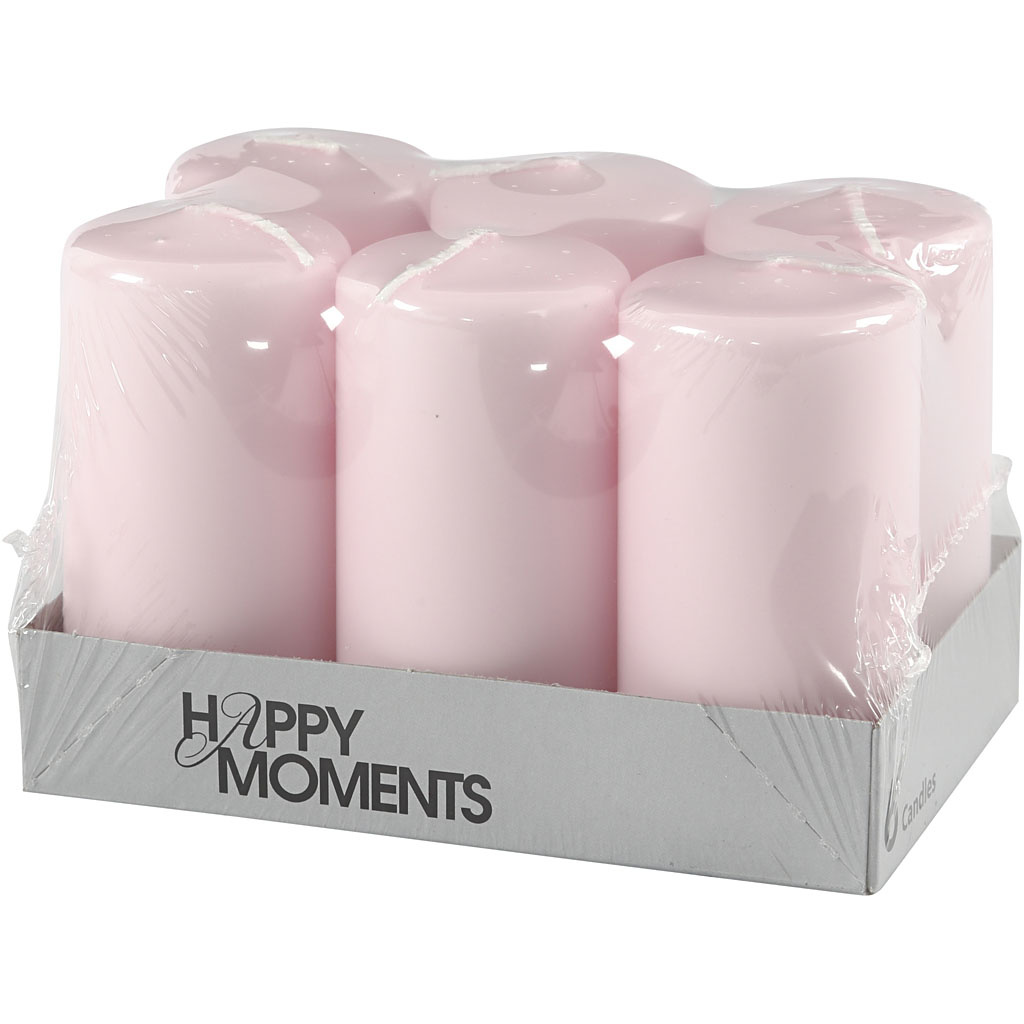 Creativ Company Kaarsen, H: 100 mm, d 50 mm, lichtrood, 6 stuk/ 1 doos