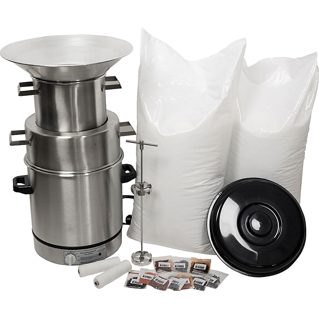 Deze set bevat alle benodigde materialen om te beginnen met het dompelen van kaarsen met een was smeltketel, dompelringen en parafine