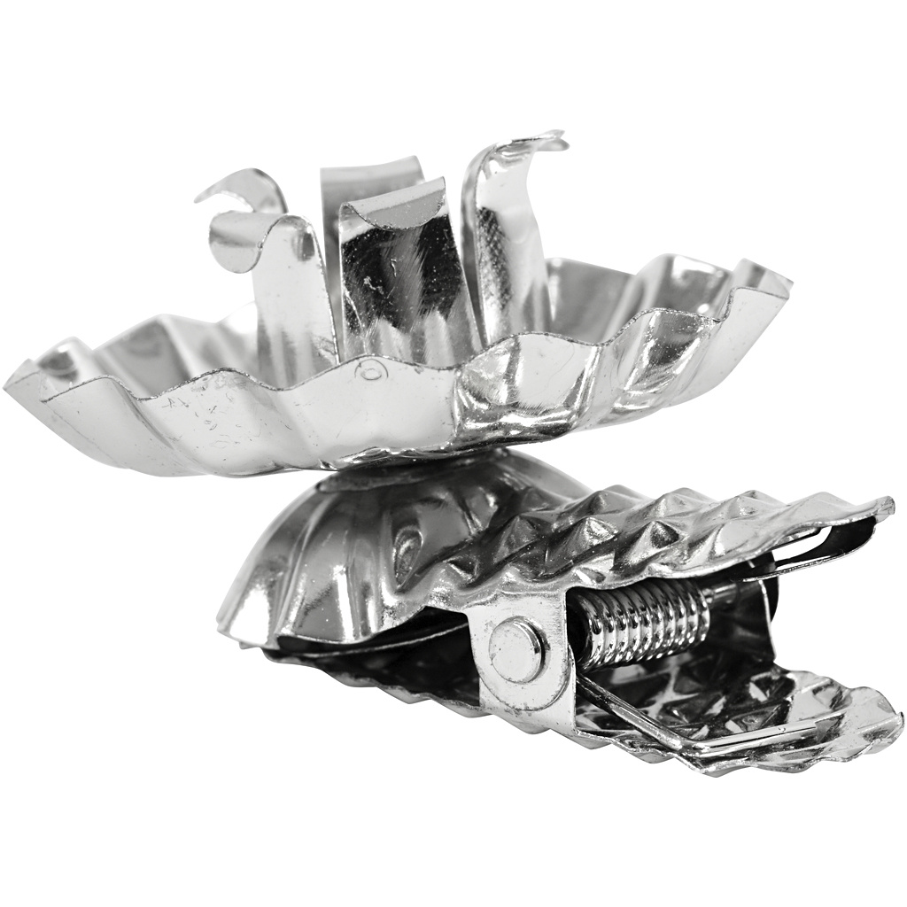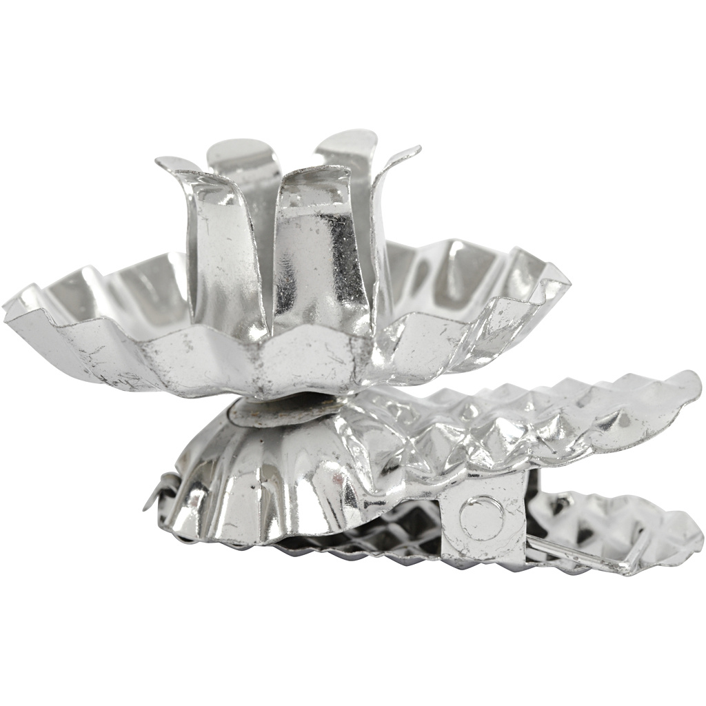 De stevige metalen constructie zorgt ervoor dat ze veilig op verschillende oppervlakken kunnen worden vastgeklemd, zoals randen van kandelaars, kerstbomen of decoratieve arrangementen. De verzilverde laag geeft een elegante glans, waardoor zowel dagelijks gebruik als feestelijke gelegenheden net dat beetje extra uitstraling krijgen.