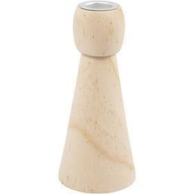 Kandelaar van hout met metalen inleg voor taps toelopende kaarsen die je naar eigen smaak kunt versieren Lees meer