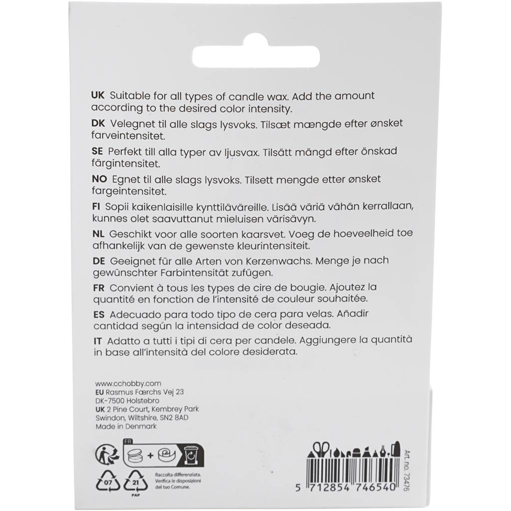 Met deze kaarsenverf maakt u uw eigen unieke kaarsen in mooie kleuren. Geschikt voor sojawas, paraffine en andere kaarswas