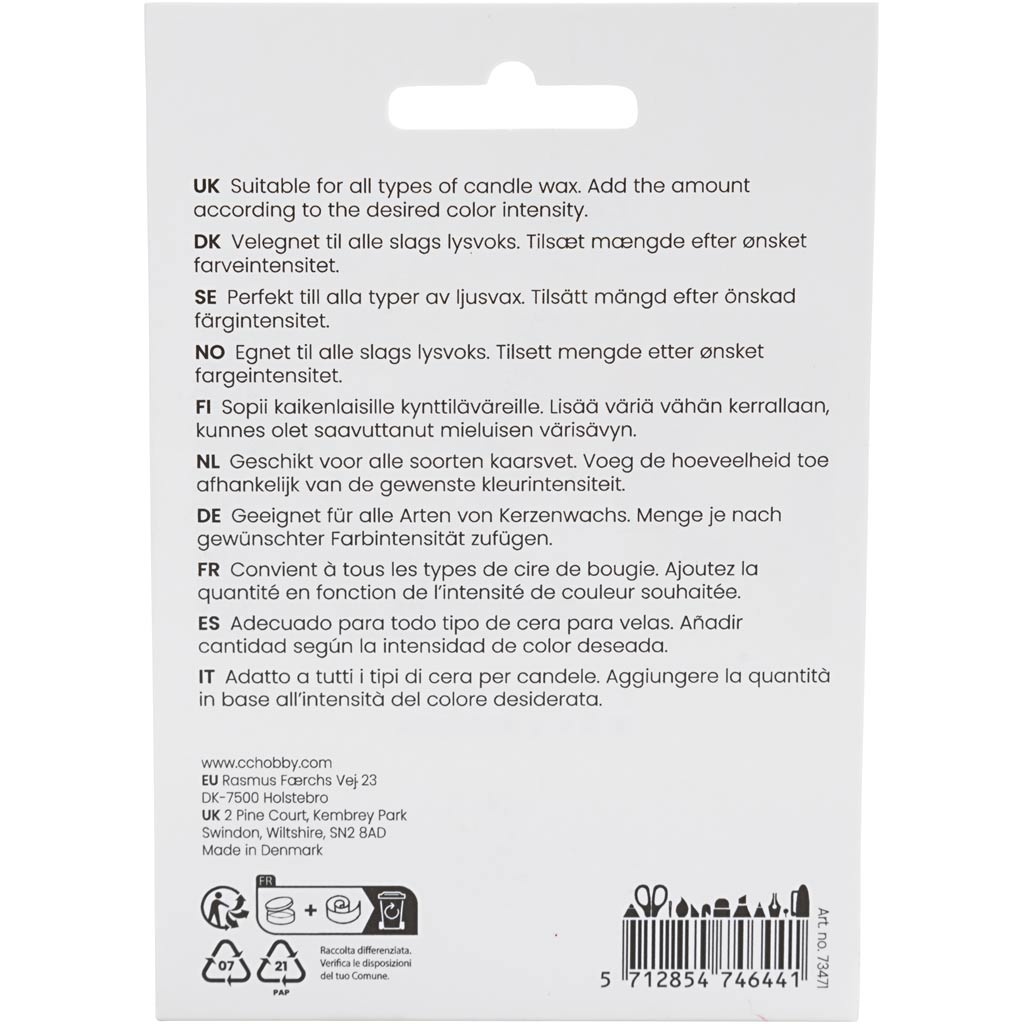 Met deze kaarsenverf maakt u uw eigen unieke kaarsen in mooie kleuren. Geschikt voor sojawas, paraffine en andere kaarswas