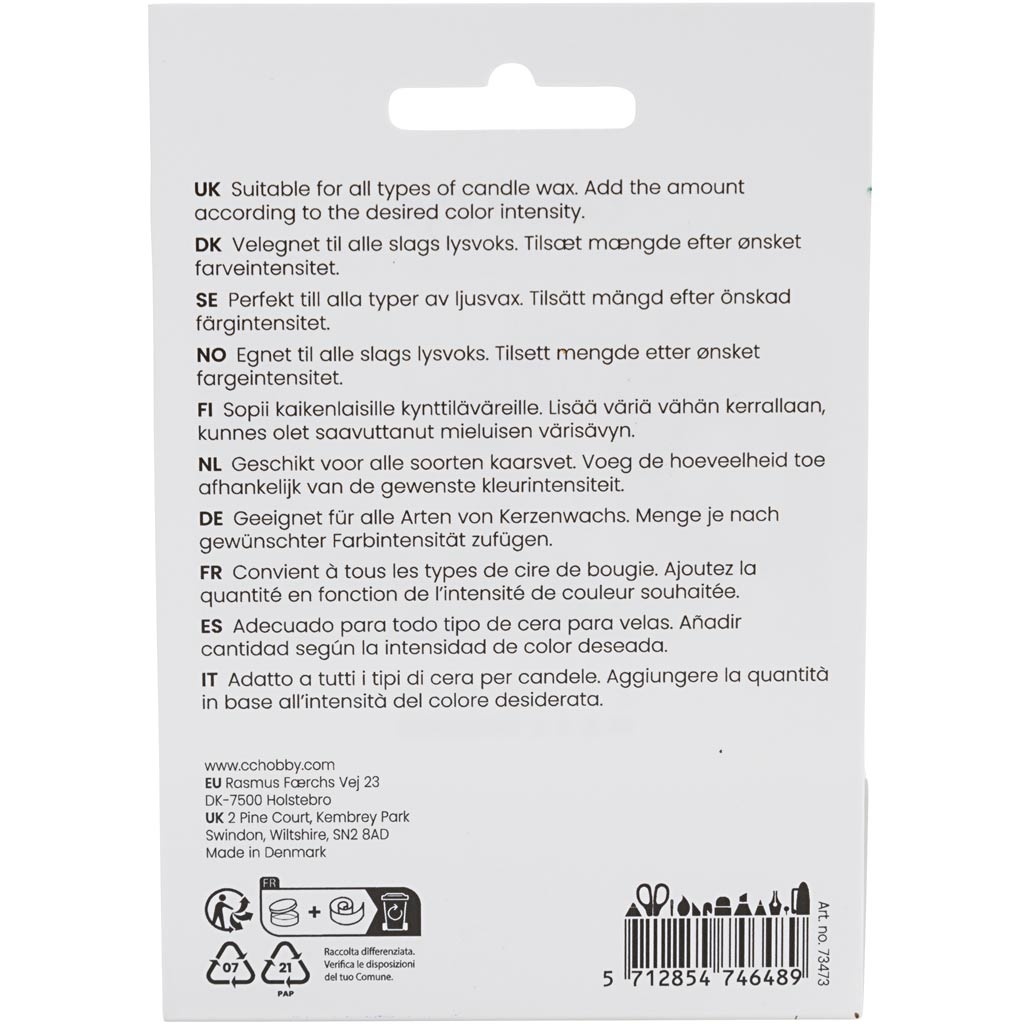 Met deze kaarsenverf maakt u uw eigen unieke kaarsen in mooie kleuren. Geschikt voor sojawas, paraffine en andere kaarswas