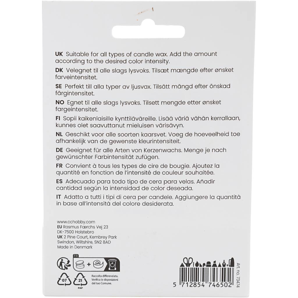 Met deze kaarsenverf maakt u uw eigen unieke kaarsen in mooie kleuren. Geschikt voor sojawas, paraffine en andere kaarswas