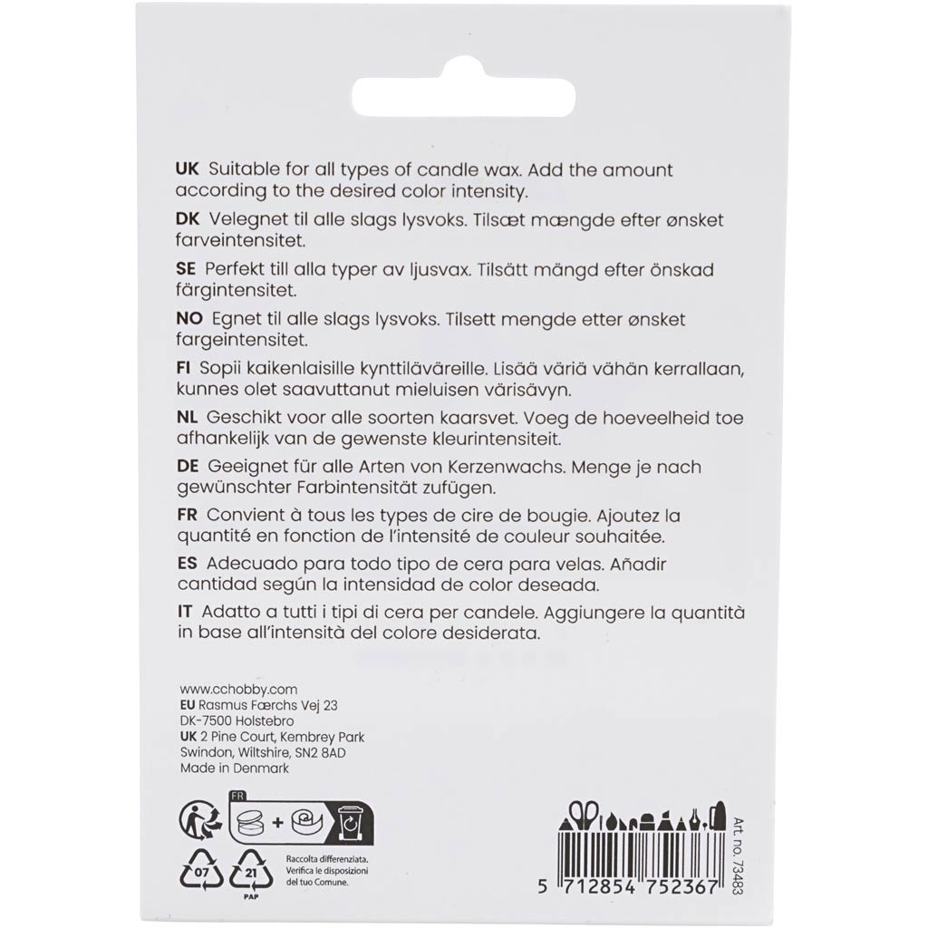 Met deze kaarsenverf maakt u uw eigen unieke kaarsen in mooie kleuren. Geschikt voor sojawas, paraffine en andere kaarswas