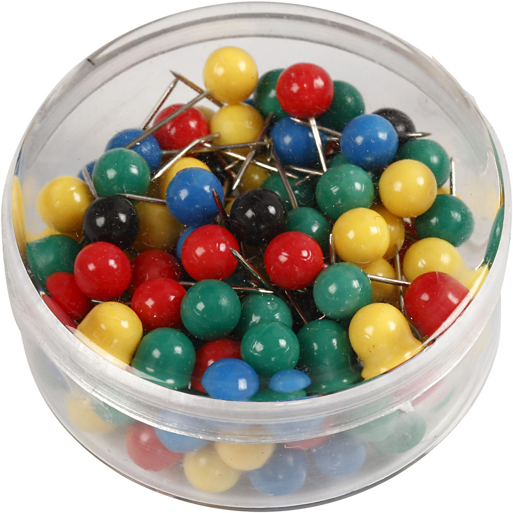 Creativ Company Kaart pinnen, L: 17 mm, d 6 mm, diverse kleuren, 100 div/ 1 doos