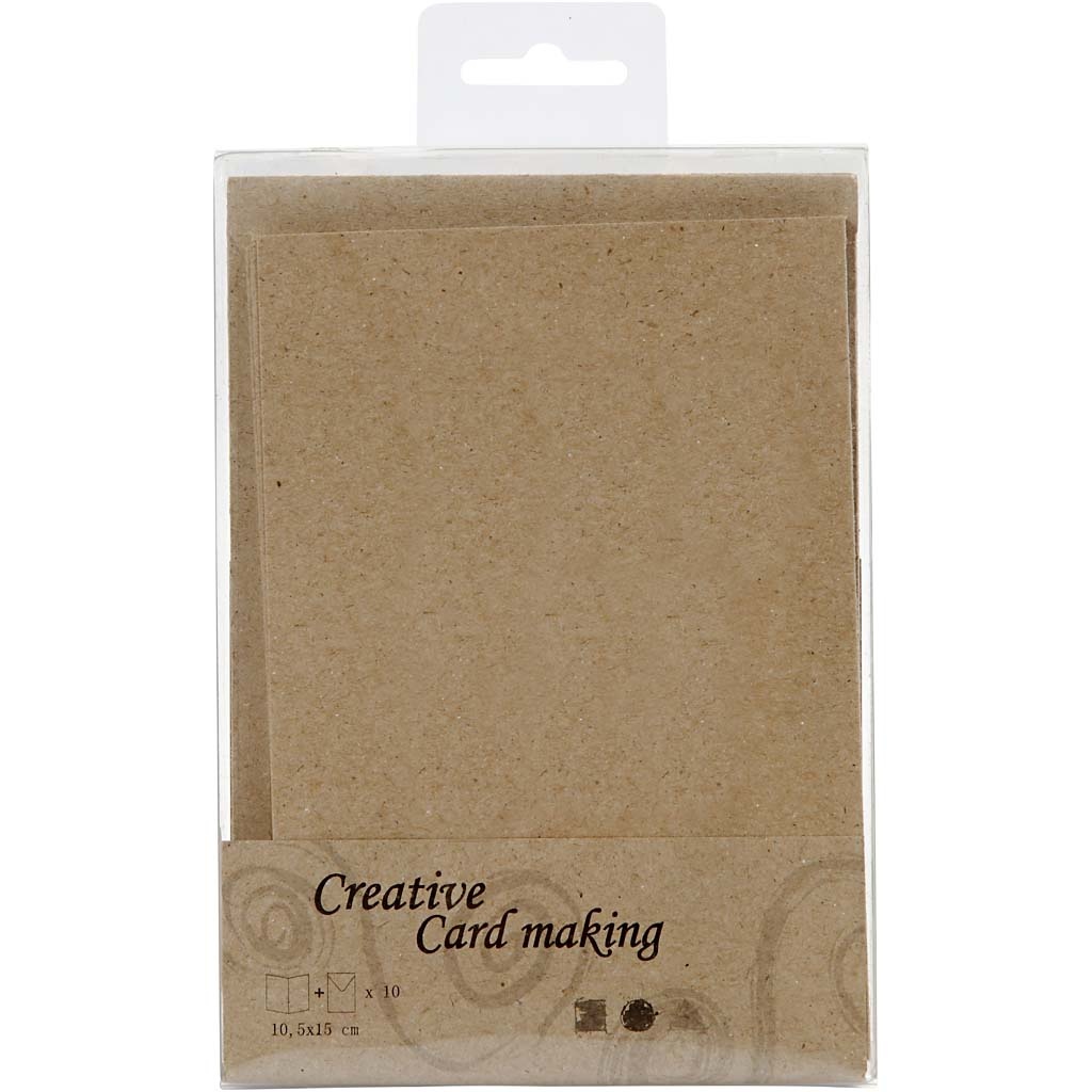 Creativ Company Kaarten en enveloppen, afmeting kaart 10,5x15 cm, afmeting envelop 11,5x16,5 cm, naturel, 10 set/ 1 doos