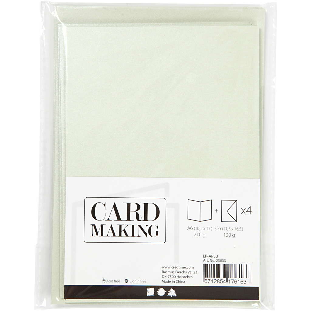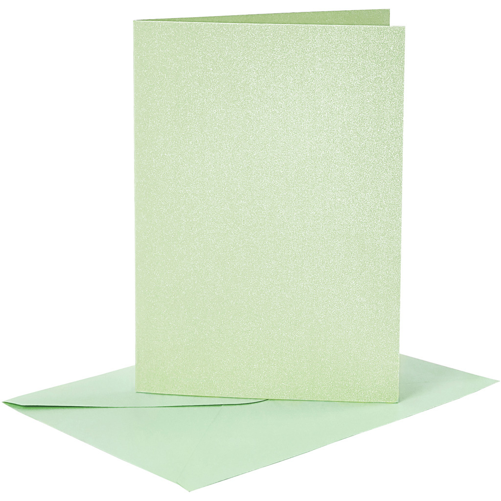 Kaarten en enveloppen, afmeting kaart 10,5x15 cm, afmeting envelop 11,5x16,5 cm, parelmoer, 120+210 gr, lichtgroen, 4 set/ 1 doos