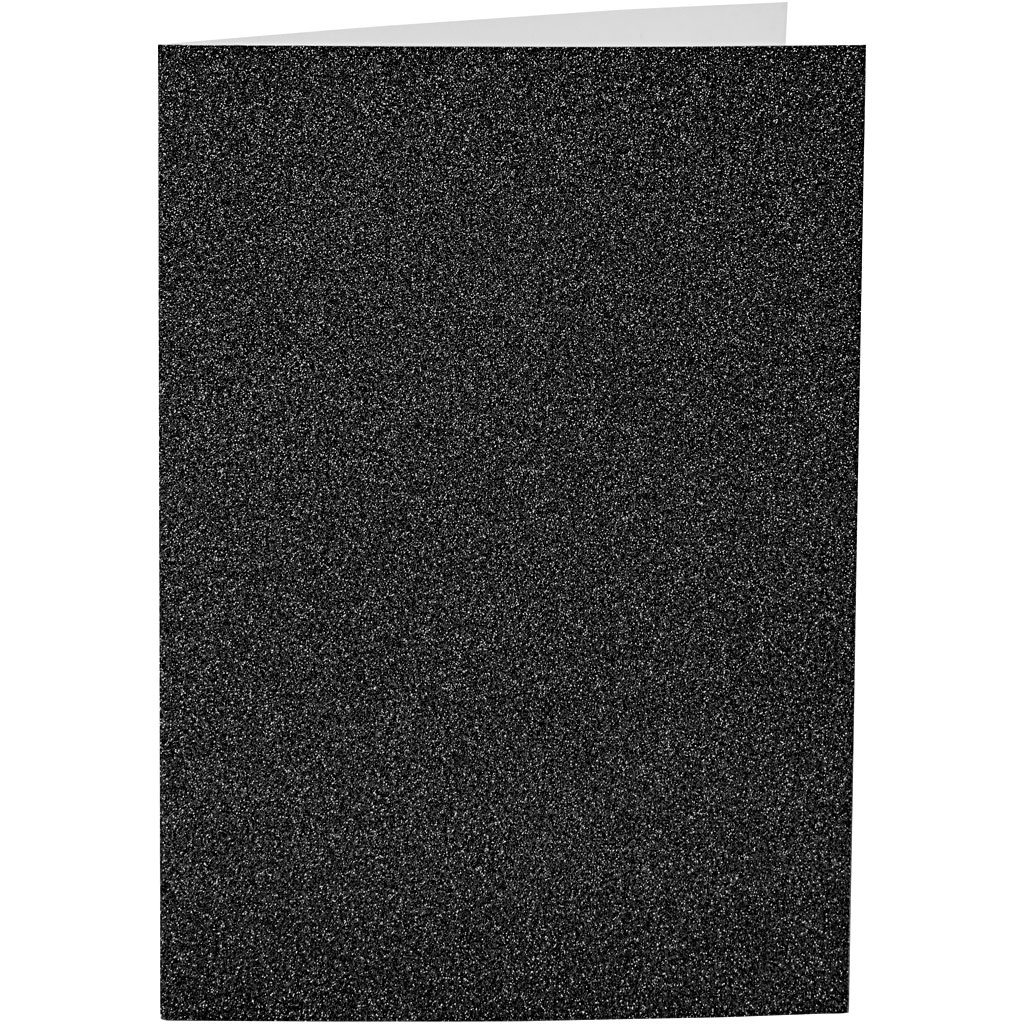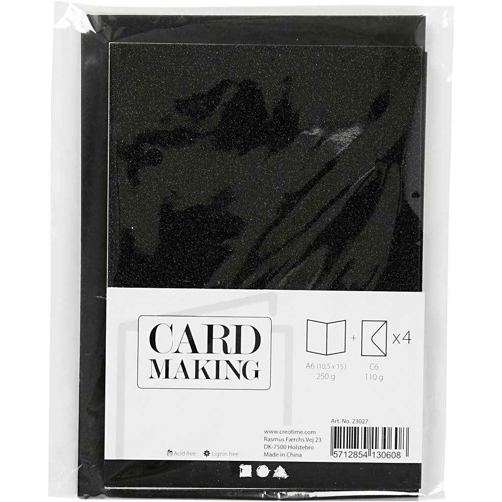 Creativ Company Kaarten en enveloppen, afmeting kaart 10,5x15 cm, afmeting envelop 11,5x16,5 cm, glitter, 110+250 gr, zwart, 4 set/ 1 doos