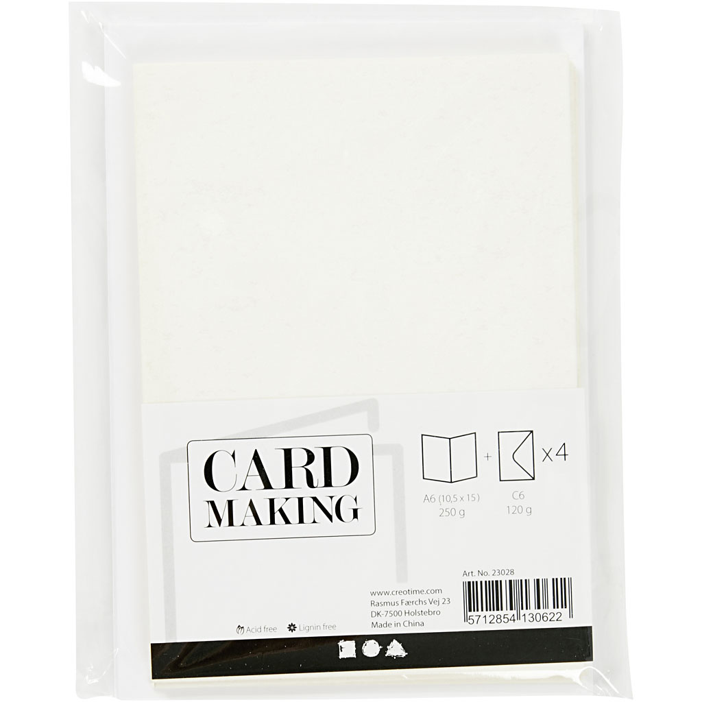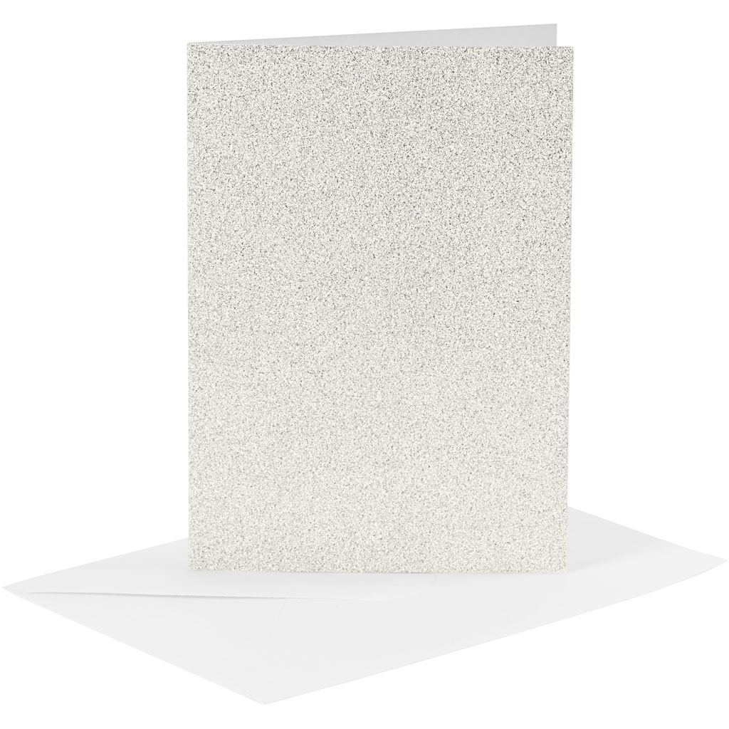 Creativ Company Kaarten en enveloppen, afmeting kaart 10,5x15 cm, afmeting envelop 11,5x16,5 cm, glitter, 120+250 gr, wit, 4 set/ 1 doos